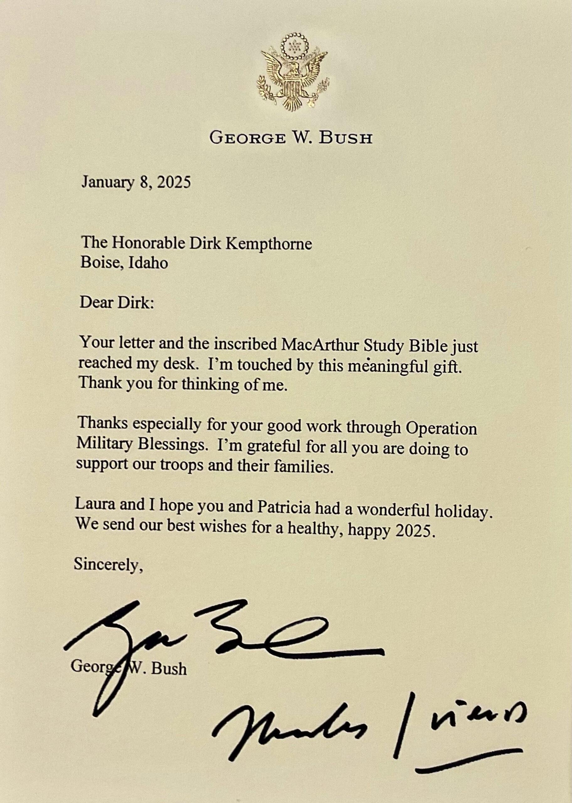 “Thanks especially for your good work through Operation Military Blessings. I’m grateful for all you are doing to support our troops and their families.”