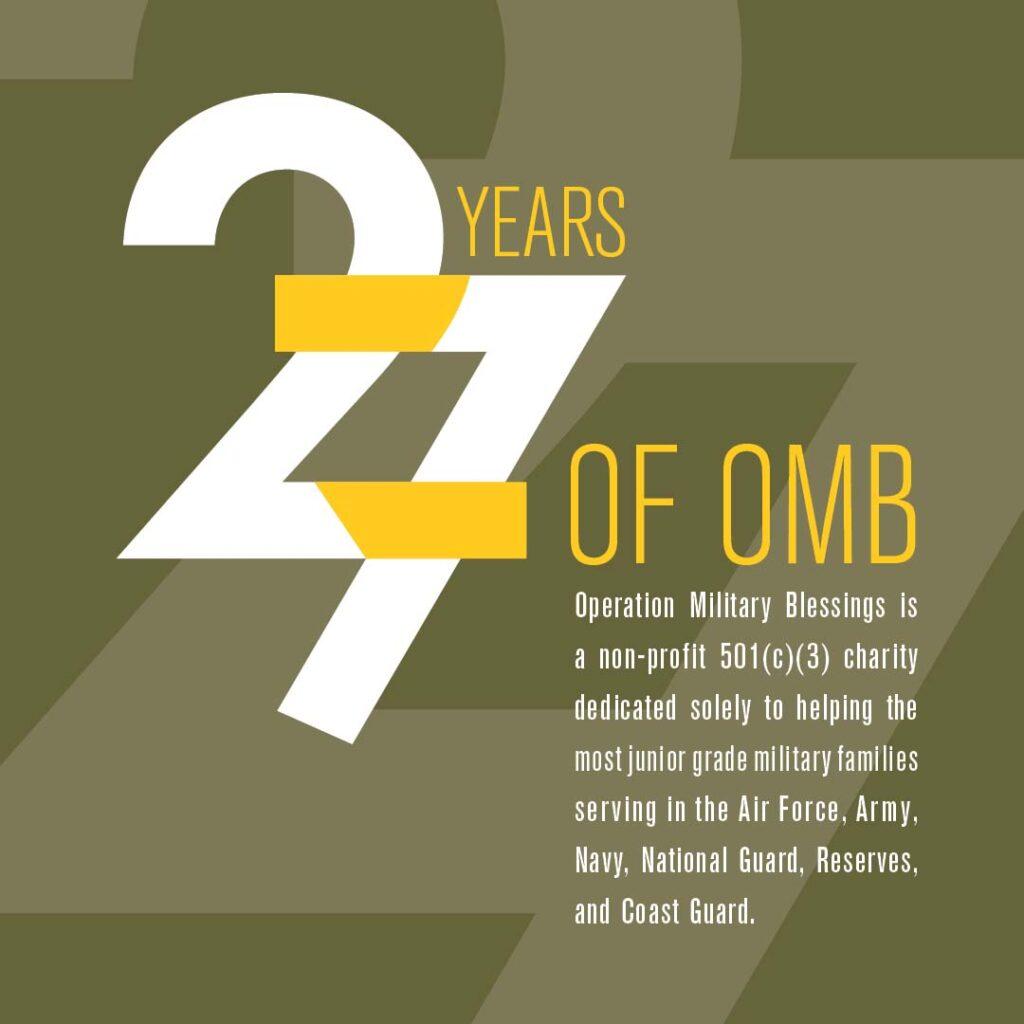 Operation Military Blessing’s Mission emphasis aids the very young enlisted junior grade military families throughout the year struggling financially, emotionally, sickness, combat, deployments, and family separations.